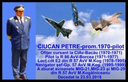 Potrivit unui mesaj postat de ANCMRR-Fetești, comandorul (Rtr) Ciucan și-a început cariera de pilot la Borcea, unde a zburat pe Mig-21,apoi pe aerodromul Mihail Kogălniceanu unde a zburat cu Mig-23 sș Mig 29,până la trecerea în rezervă (pensionare).