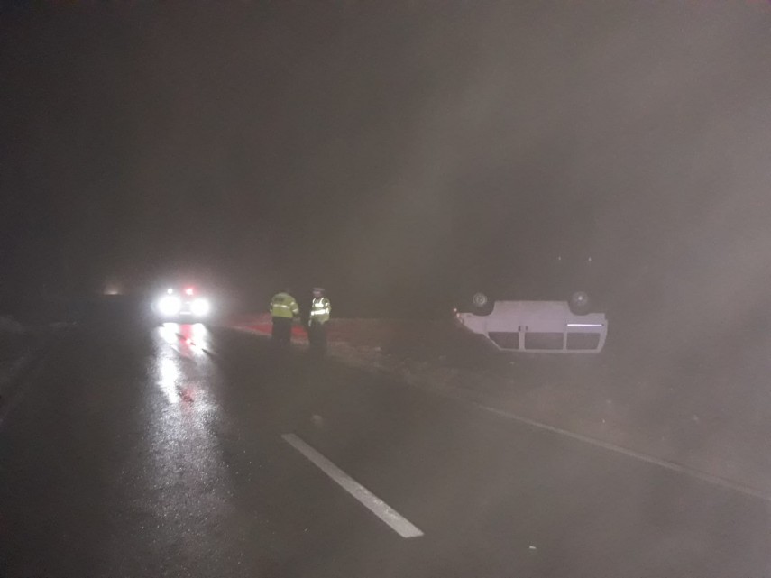 Eveniment rutier în Tulcea: Nu a adaptat viteza la condițiile de drum și s-a răsturnat. Două persoane rănite