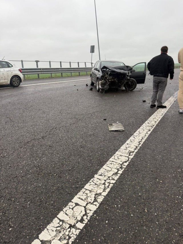 FOTO Accident rutier la ieșirea de pe A2 spre A4, sensul spre Constanța. Un autoturism a intrat într-un parapet