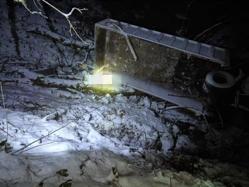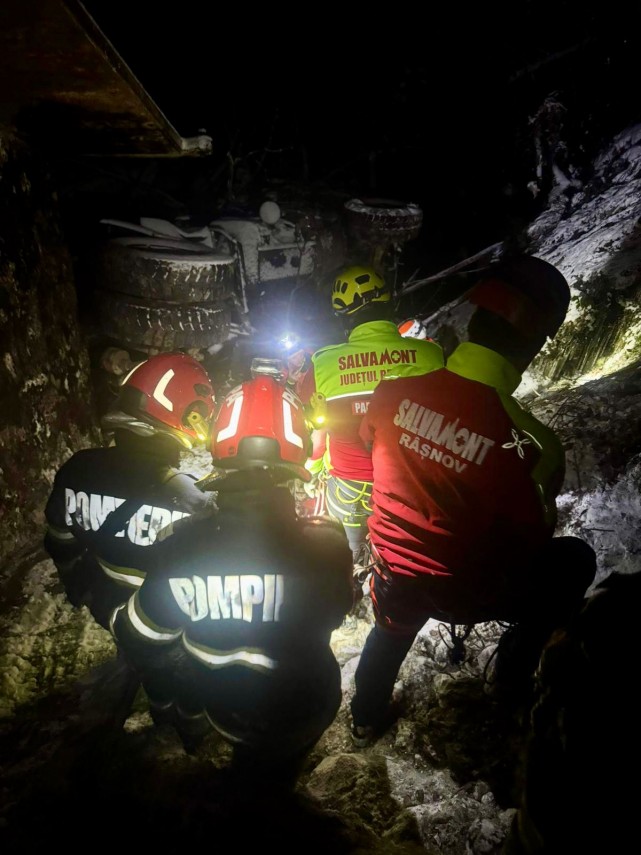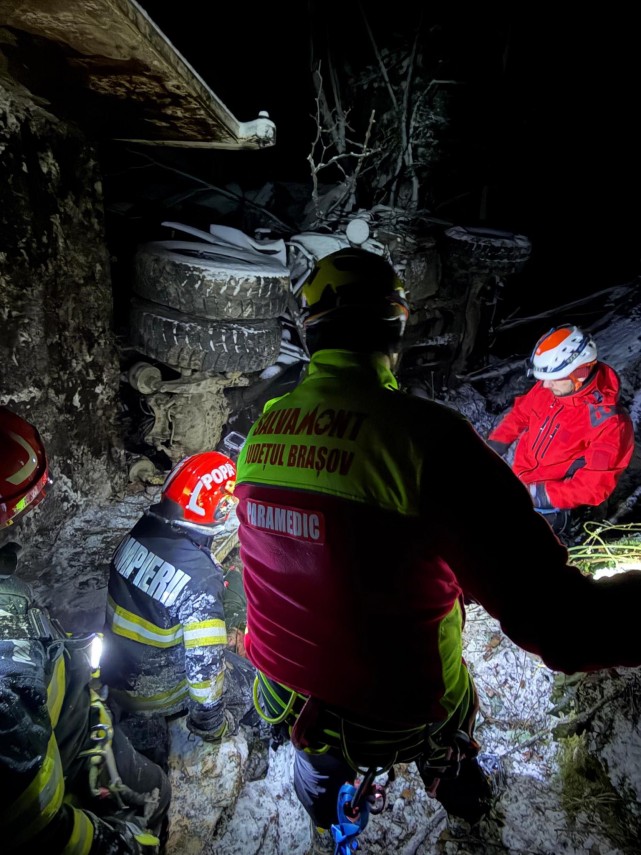 FOTO: Doi bărbați au murit după ce s-au răsturnat cu camionul într-o râpă pe Valea Arpașu Mare