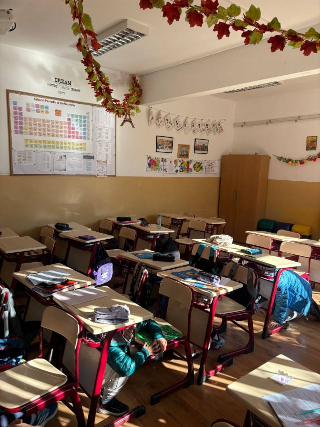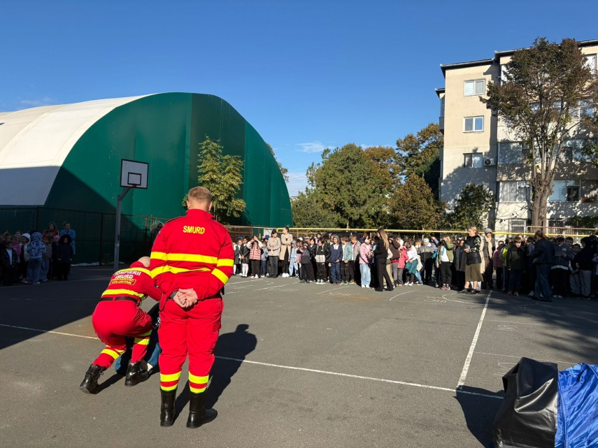 FOTO: Exercițiu de simulare a unui cutremur la Școala Gimnazială nr. 3 „Ciprian Porumbescu” Constanța.