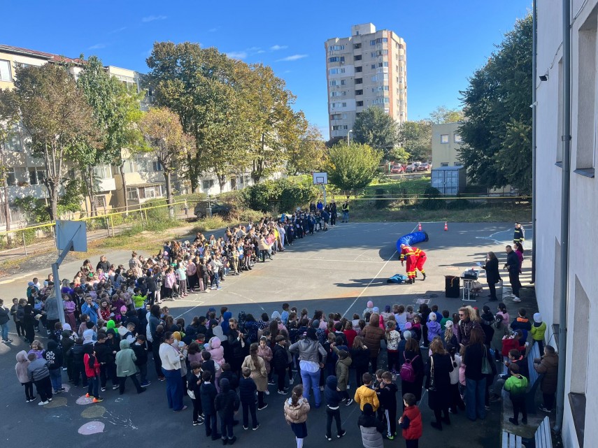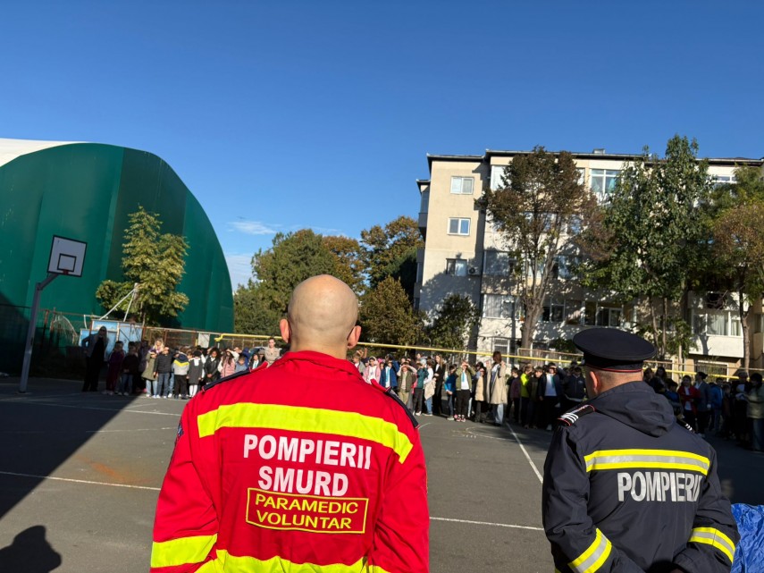 FOTO Exercițiu de simulare a unui cutremur la Școala Gimnazială nr. 3 „Ciprian Porumbescu” Constanța. Detalii de la pompieri