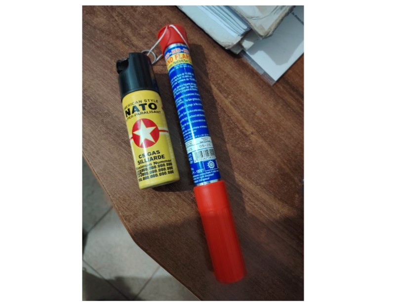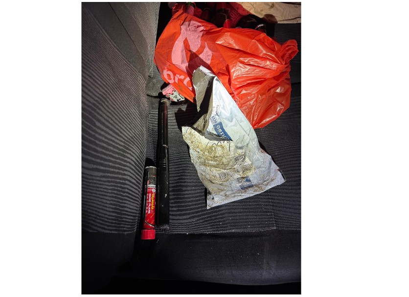 În urma controlului efectuat, au fost depistate în două autoturisme mai multe materiale pirotehnice, precum și un baston telescopic.