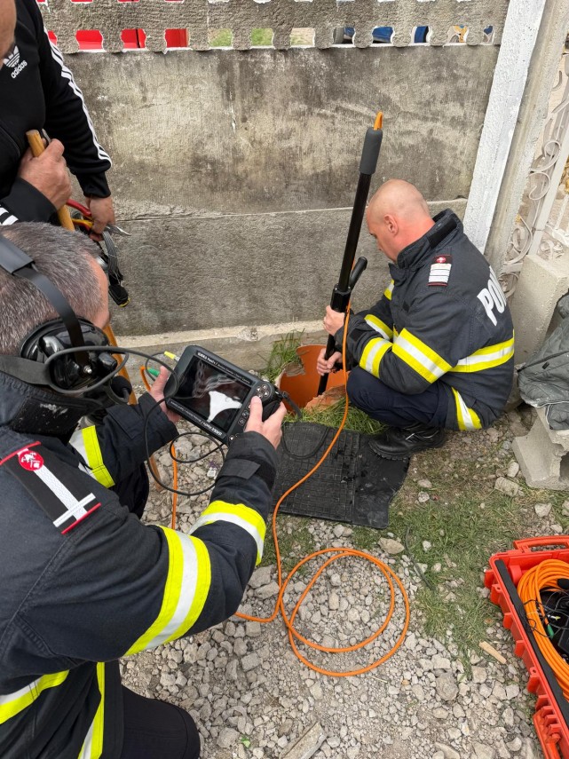 FOTO. Intervenție emoționantă la Deva. Doi cățeluși salvați dintr-o conductă subterană. Unul dintre pui, readus la viață prin resuscitare