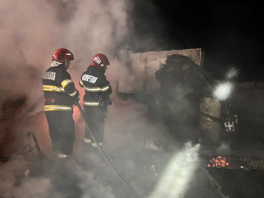 FOTO. O anexă dintr-o gospodărie din Tulcea a luat foc din cauza unui scurt circuit electric