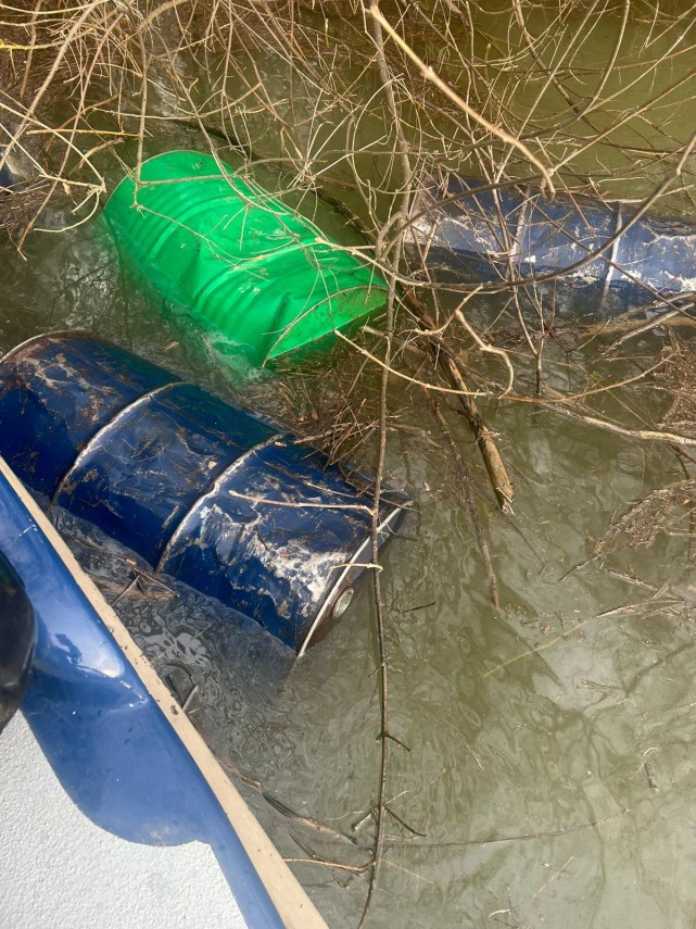 FOTO. Opt butoaie cu combustibil, depistate și recuperate din Dunăre, în urma unei acțiuni a jandarmilor
