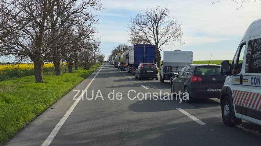FOTO. Știri Constanța azi: Trafic blocat pe DN 38, în zona localității Amzacea, în urma unui accident. Un