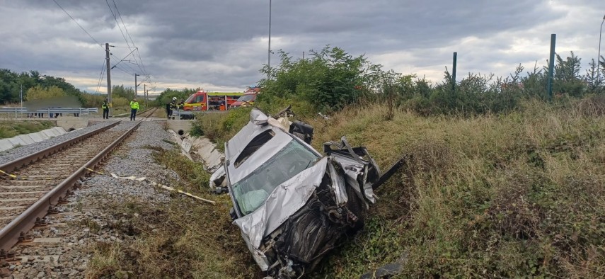 FOTO. Știri România Accident la trecerea peste calea ferată din Trei Movile, județul Suceava! Un bărbat rănit după ce mașina sa a fost lovită de tren