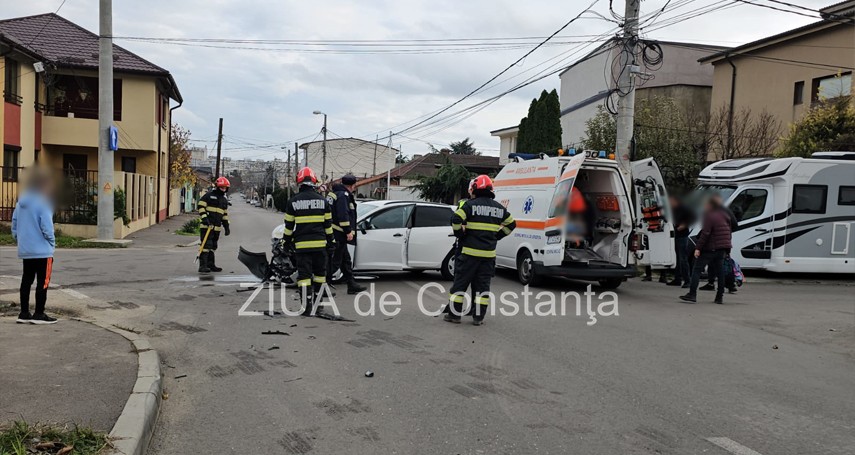 FOTO+VIDEO UPDATE. Accident la intersecția străzilor Frunzelor cu Fulgerului din Constanța. Printre victime, și o minoră