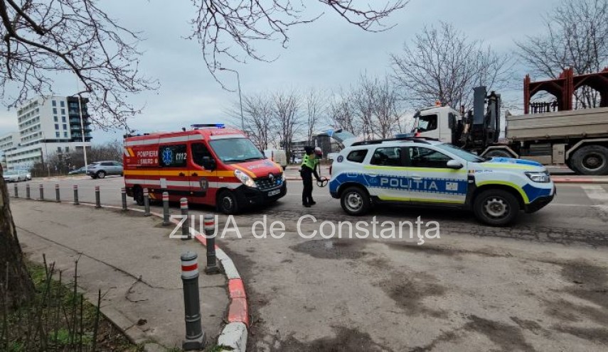 FOTO-VIDEO. Accident rutier în zona Campus din Constanța. Un tânăr a fost rănit. Traficul din direcția VIVO,
