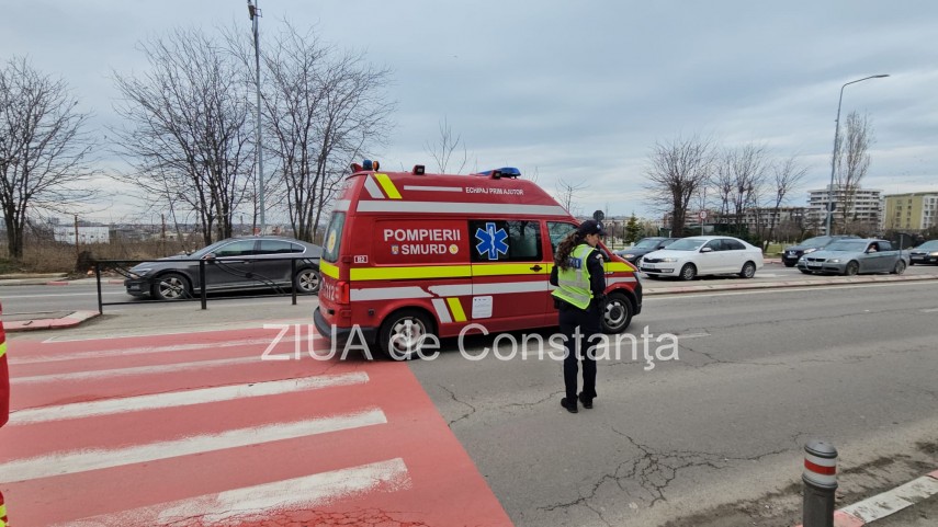 FOTO-VIDEO. Accident rutier în zona Campus din Constanța. Un tânăr a fost rănit. Traficul din direcția VIVO,