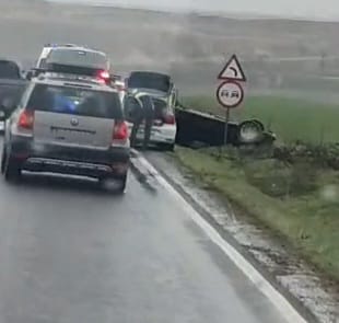 UPDATE: FOTO+VIDEO. Accident rutier în zona Palazu Mic, Constanța. O mașină s-a răsturnat