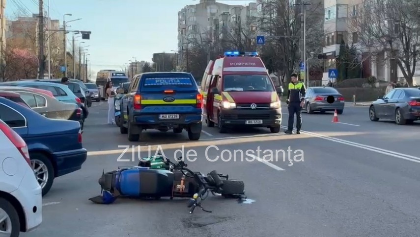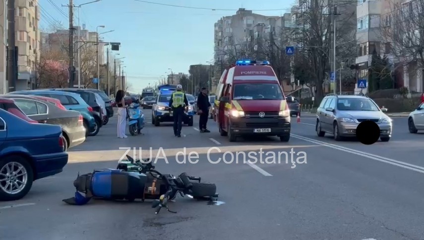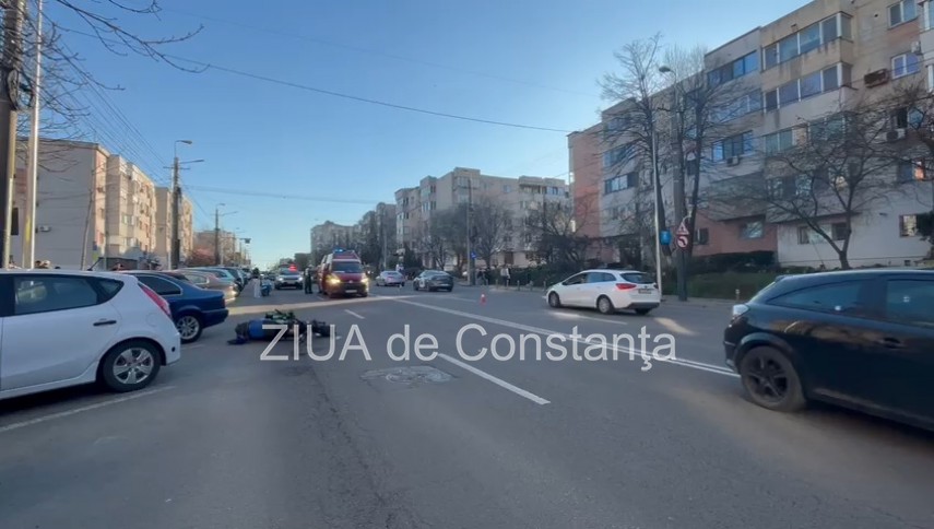 FOTO+VIDEO Accident rutier pe strada Soveja din Constanța! Un autoturism și un scuter, implicați