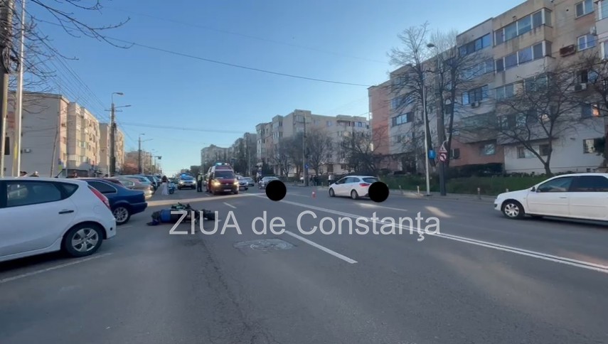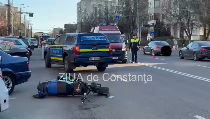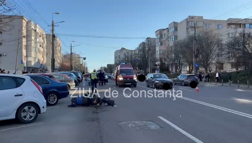 FOTO+VIDEO: Accident rutier pe strada Soveja din Constanța! Un autoturism și un scuter, implicați