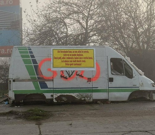 „Aici locuiește Ioan, un om aflat în nevoie, care nu se poate deplasa.