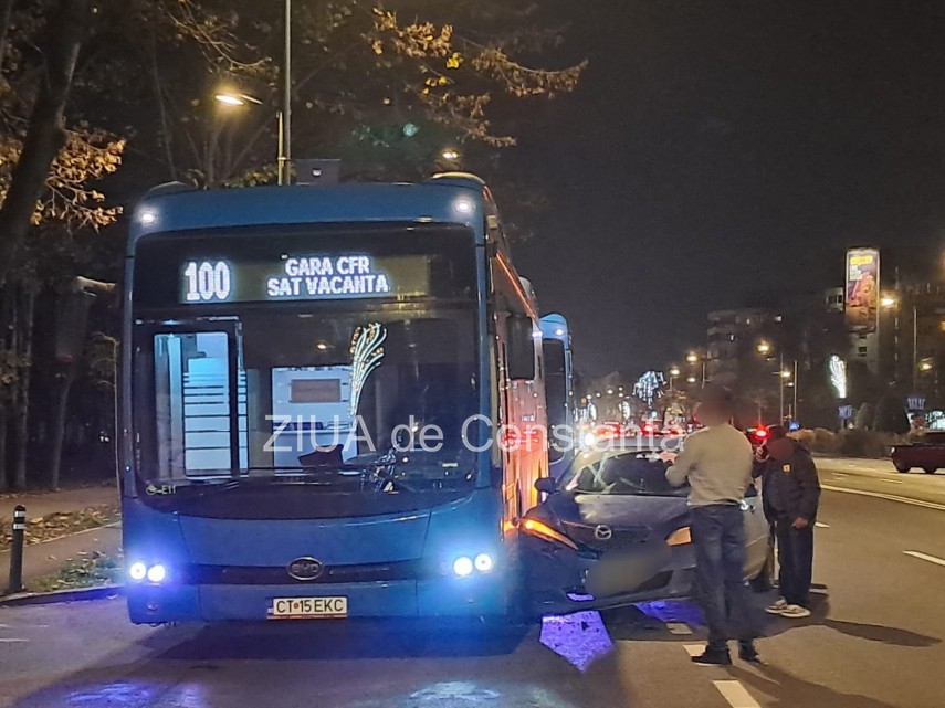 FOTO+VIDEO: Coliziune între un autobuz și un autoturism în zona Catedralei Padre Pio din Constanța