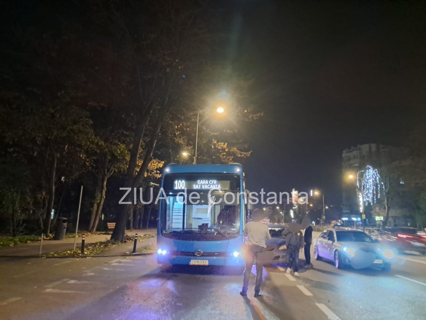 FOTO+VIDEO: Coliziune între un autobuz și un autoturism în zona Catedralei Padre Pio din Constanța