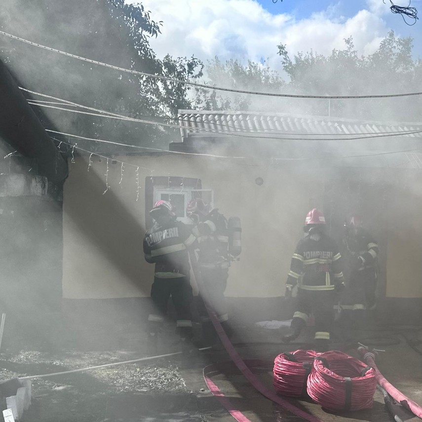 FOTO+VIDEO Incendiu la o casă de locuit din municipiul Tulcea. Pompierii, chemați în ajutor
