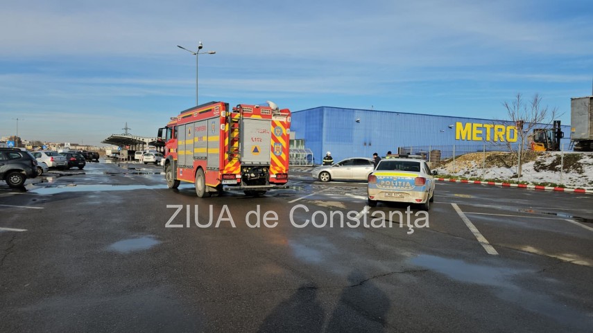 FOTO+VIDEO. Incendiu la un autoturism aflat în parcarea Metro pe Șoseaua Mangaliei din Constanța