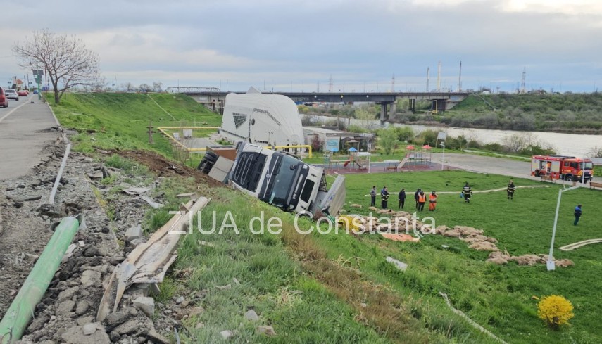 În această dimineață de 21 aprilie, în jurul orei 03:00, în apropierea orașului Năvodari, un autotren, încărcat cu animale, s-a răsturnat chiar înainte de urcarea pe podul din localitate.Pompierii intervin la fața locului.