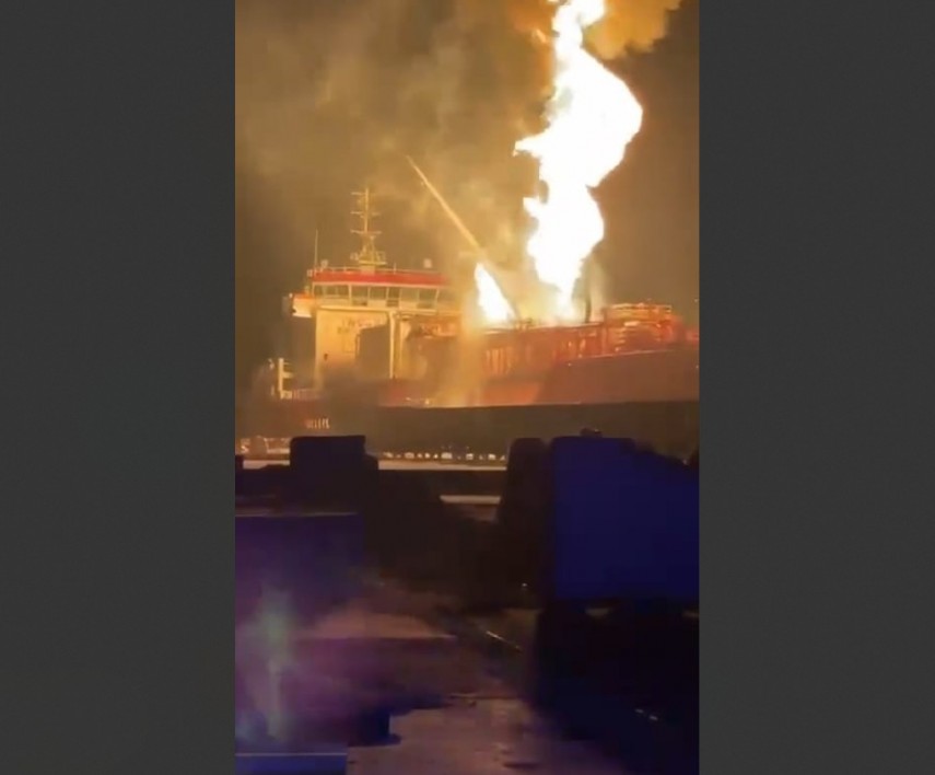 Au apărut noi imagini cu nava încărcată cu GPL care a fost cuprinsă de flăcări în zona localității Ismail.