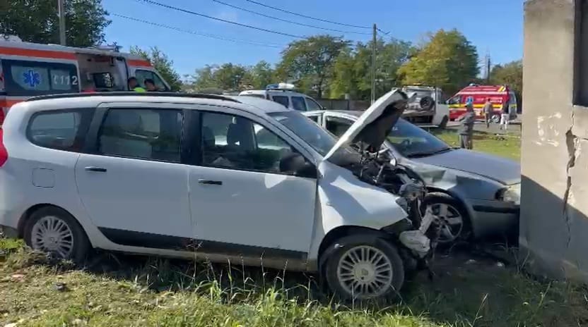 În urma impactului, cele 2 autoturisme au ricoșat în gardul unui imobil.