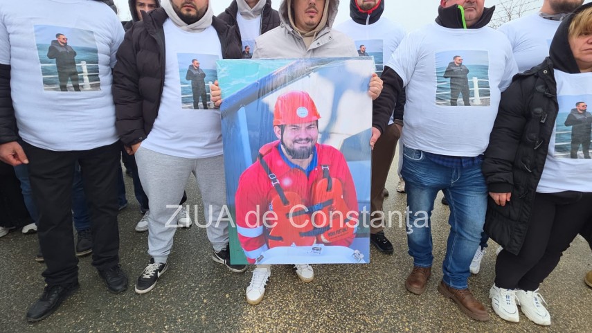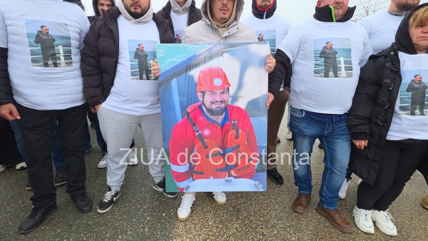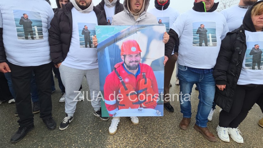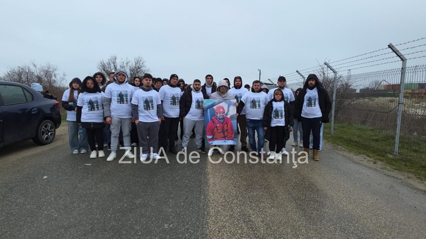 Omagiu în Portul Midia FOTO-VIDEO. Zeci de tineri s-au îmbrăcat în tricouri cu chipul unuia din marinarii dispăruți