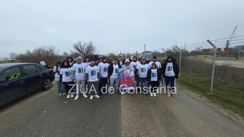 Omagiu în Portul Midia: FOTO-VIDEO. Zeci de tineri s-au îmbrăcat în tricouri cu chipul unuia din marinarii