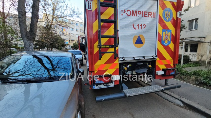 FOTO+VIDEO Pompierii au reușit cu greu să ajungă la incendiul de pe Aleea Topolog din cauza mașinilor parcate și a drumului îngust