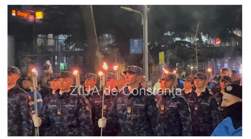 FOTO-VIDEO. Retragerea cu torțe a militarilor, moment de Ziua Națională la Constanța