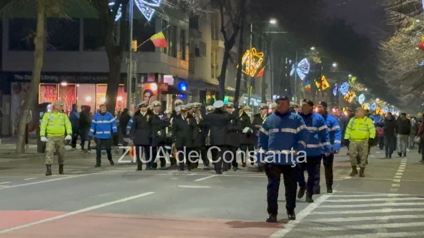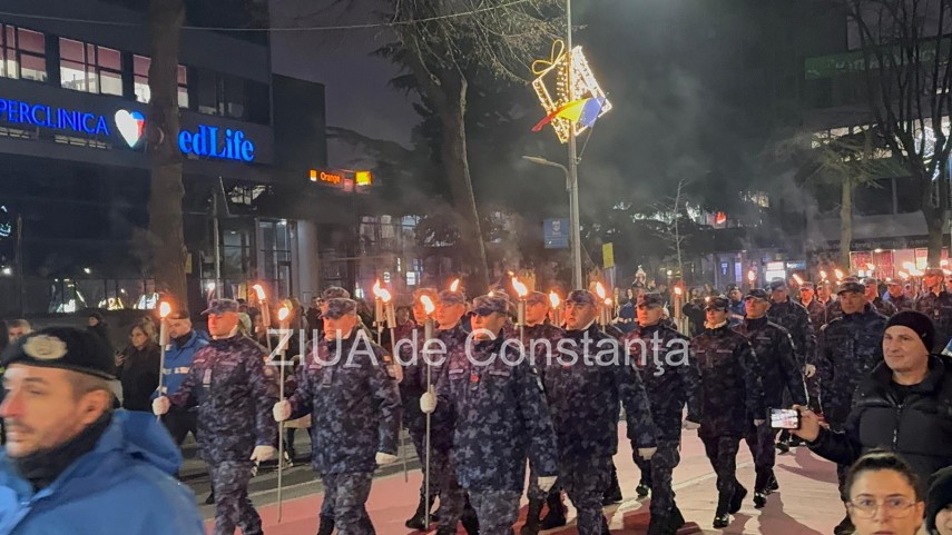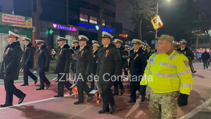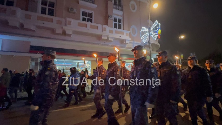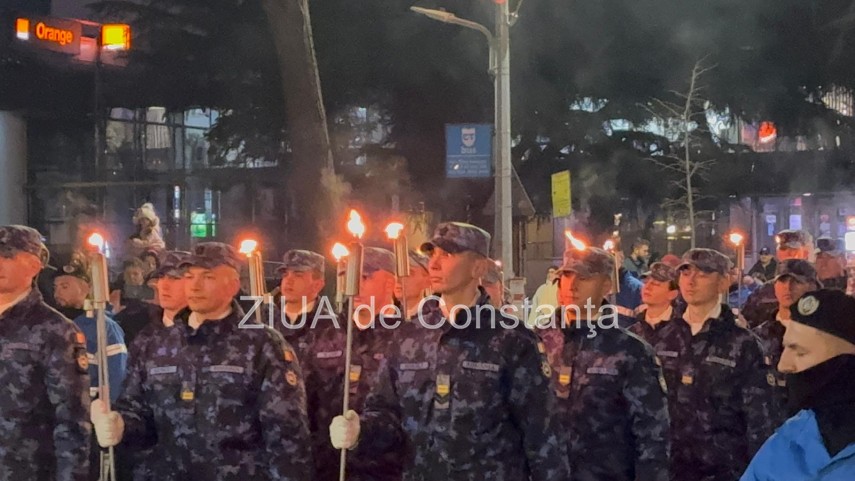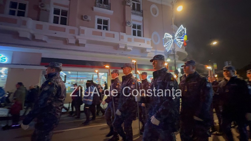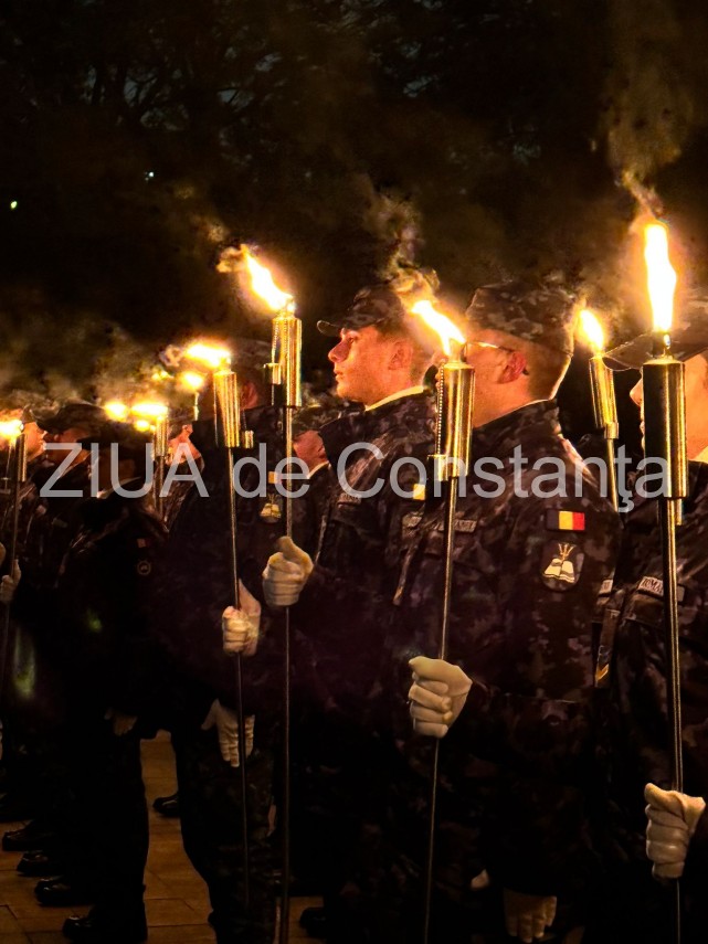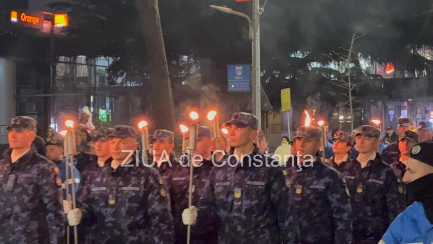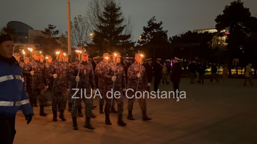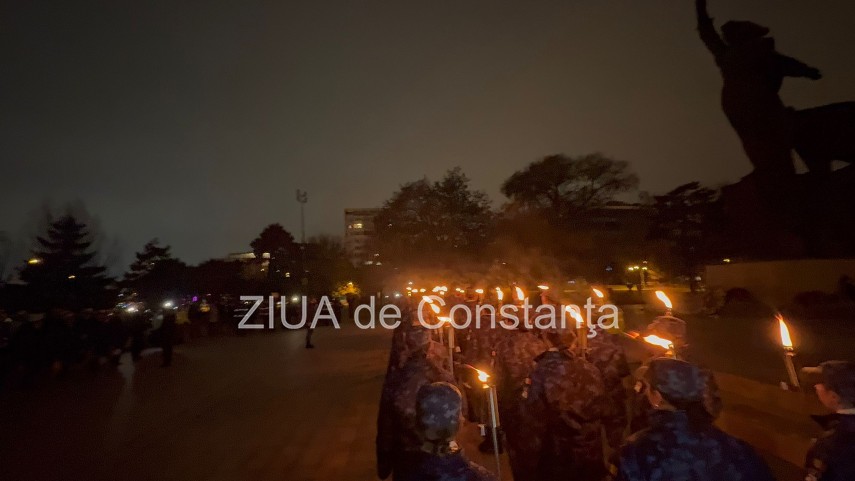 FOTO-VIDEO. Retragerea cu torțe a militarilor, moment de Ziua Națională la Constanța