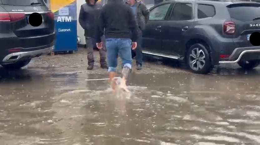 FOTO+VIDEO Strada Interioară 3 din Constanța, inundată după ploile torențiale din codul roșu