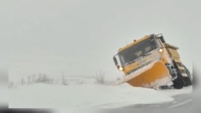 Un utilaj de deszăpezire, care acționa pentru curățarea drumului, a rămas blocat într-un șanț.