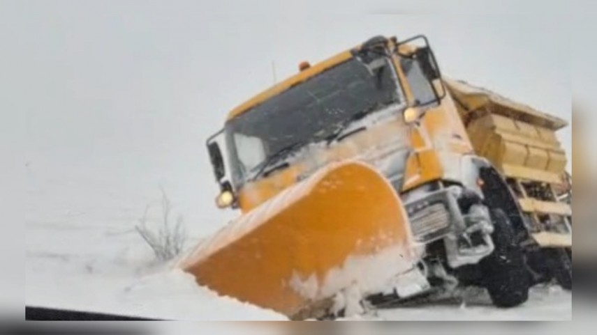 FOTO+VIDEO: Utilaj de deszăpezire blocat într-un șanț la ieșirea din Tariverde spre Tulcea