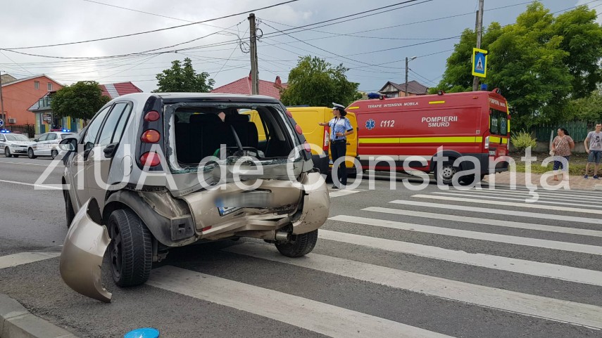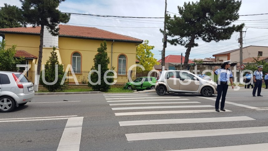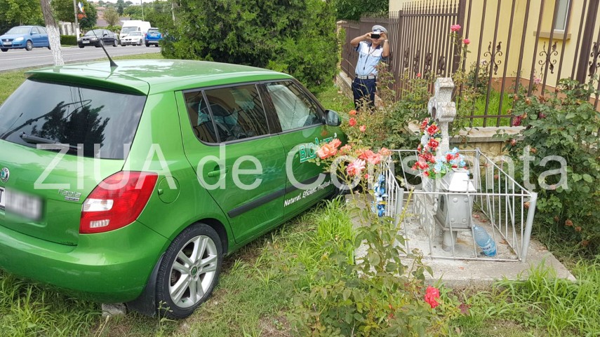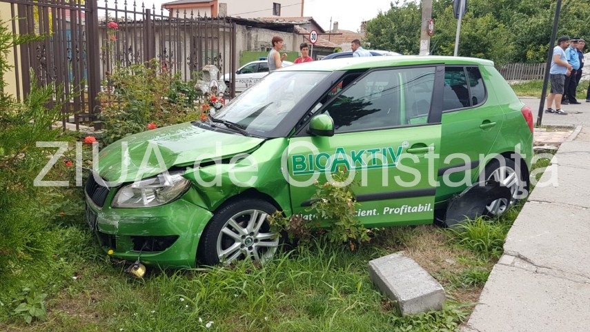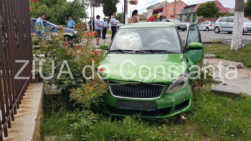 UPDATE. Imagini de la eveniment: Accident rutier în Ovidiu. O maşină a ajuns în gardul Geamiei. Un rănit (galerie