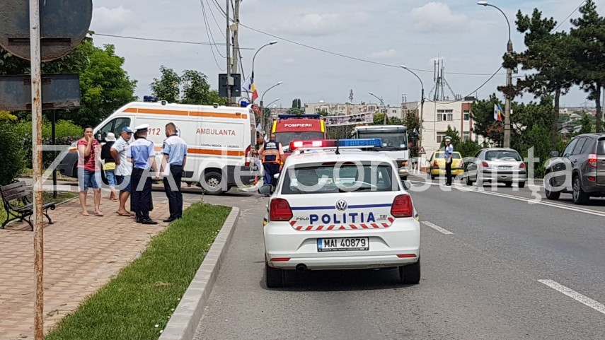 UPDATE. Imagini de la eveniment Accident rutier în Ovidiu. O maşină a ajuns în gardul Geamiei. Un rănit (galerie foto+video)