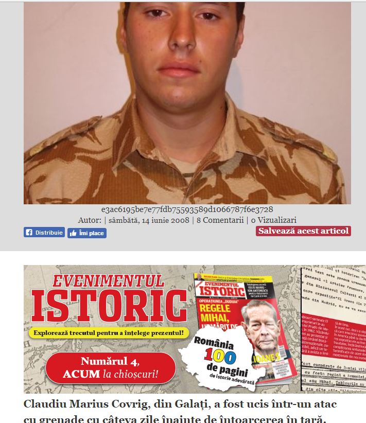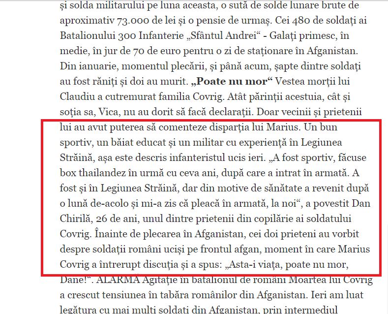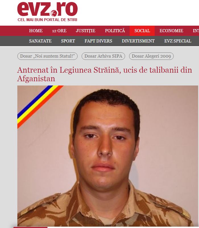 In memoriam. Căzut la datorie. 10 ani de la atacul asupra transportorului în care se afla. Fusese antrenat în Legiunea Străină. Despre cine este vorba