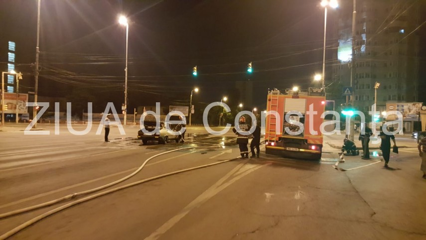 Incendiu auto în municipiul Constanţa în faţă la Kaufland. Intervin pompierii de la ISU Dobrogea. Maşina a fost complet distrusă (galerie foto+video)