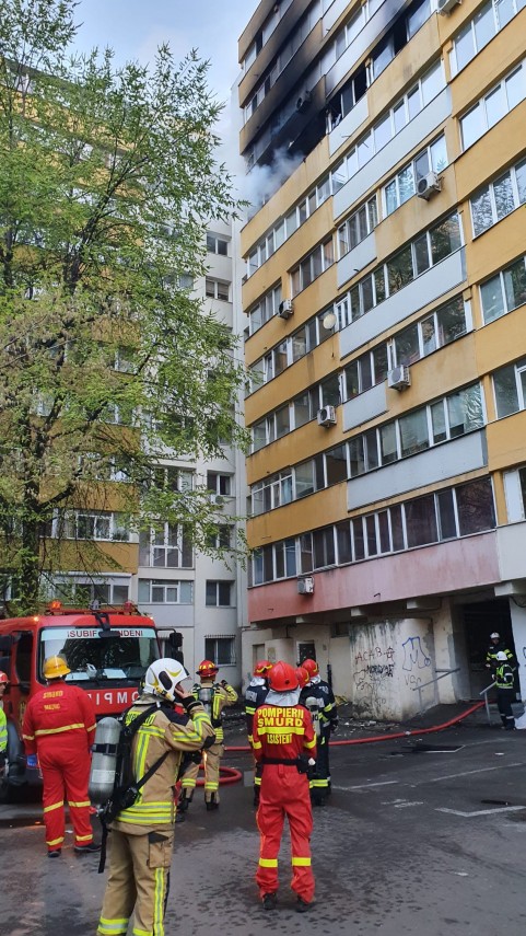 Incendiu la etajul șapte al unui bloc din București. Două persoane, evacuate de pompieri (GALERIE FOTO)