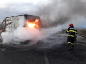Incendiu la un microbuz de călători aflat în trafic! (GALERIE FOTO)