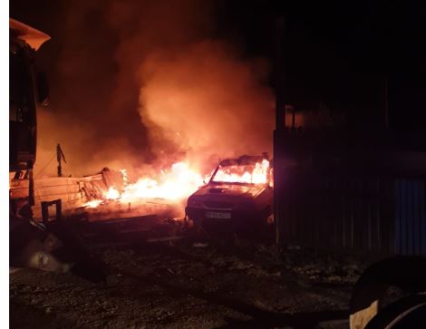 Oficialul ISU spune că incendiul a fost lichidat după aproximativ o oră și jumătate. Au ars barăci din lemn pe o suprafață de 500 metri pătrați și trei autoturisme.