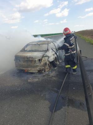 Un incendiu a izbucnit astăzi pe Autostrada A2 București-Constanța, la km 56 pe sensul către Constanța. Din primele informații un autoturism a fost cuprins de flăcări.