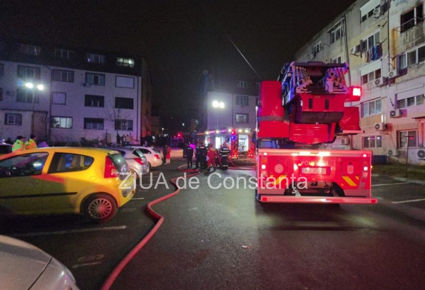 FOTO-VIDEO Incendiu violent într-un bloc din Năvodari! Locatarii sunt evacuați de urgență. Un bărbat a murit