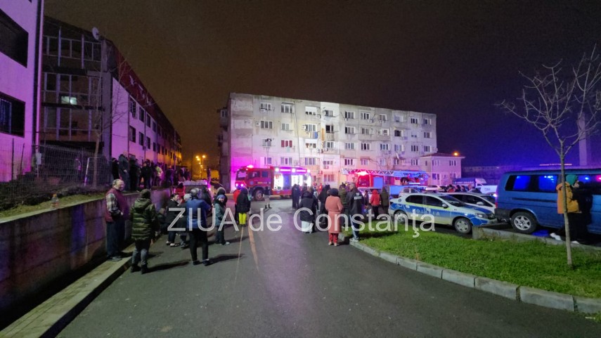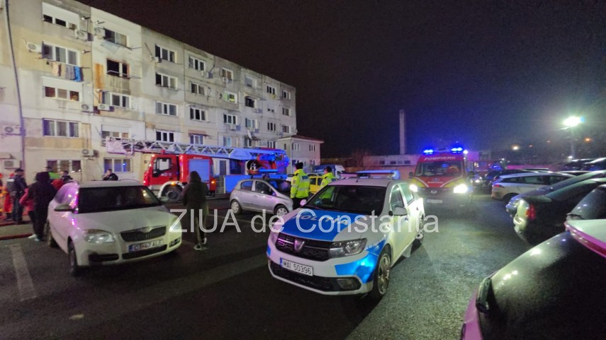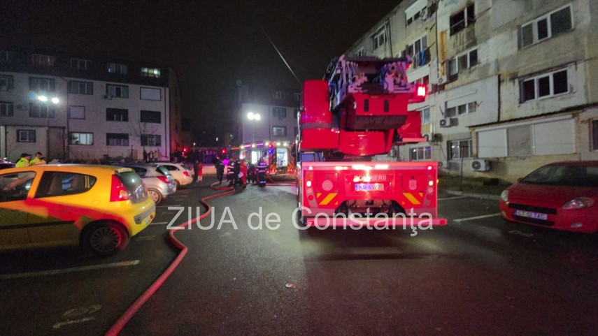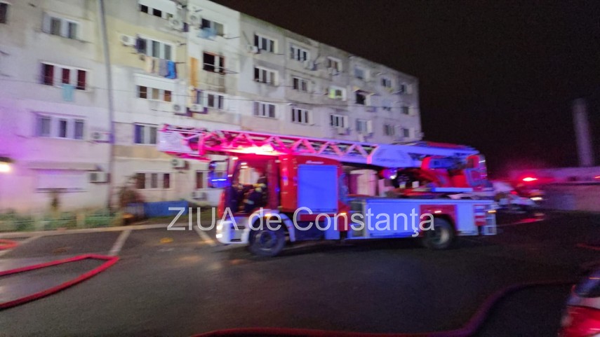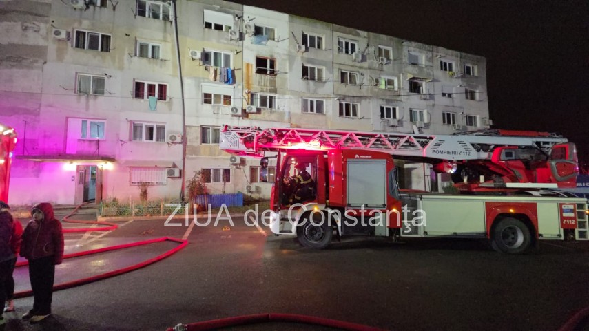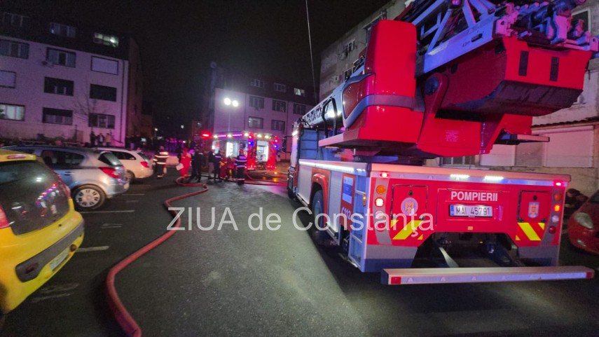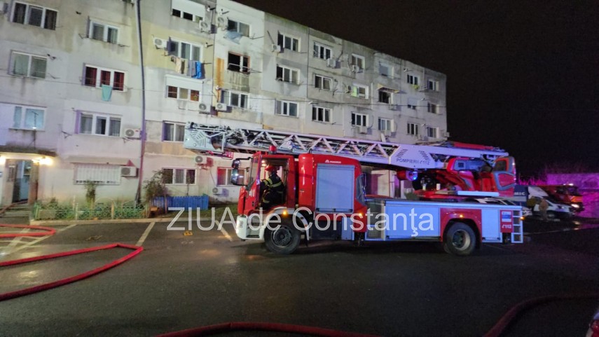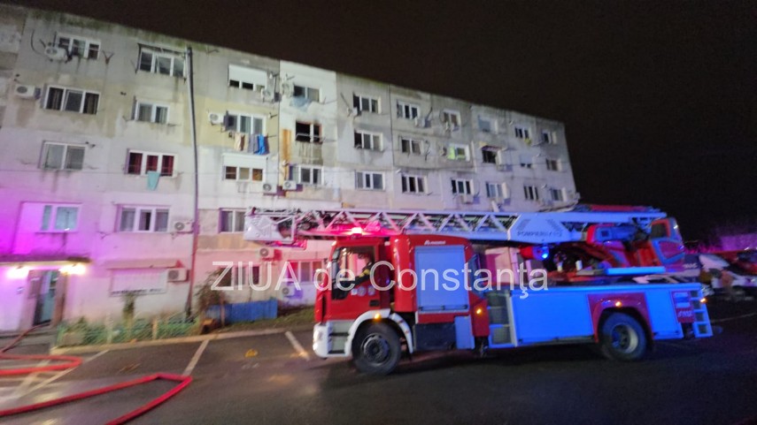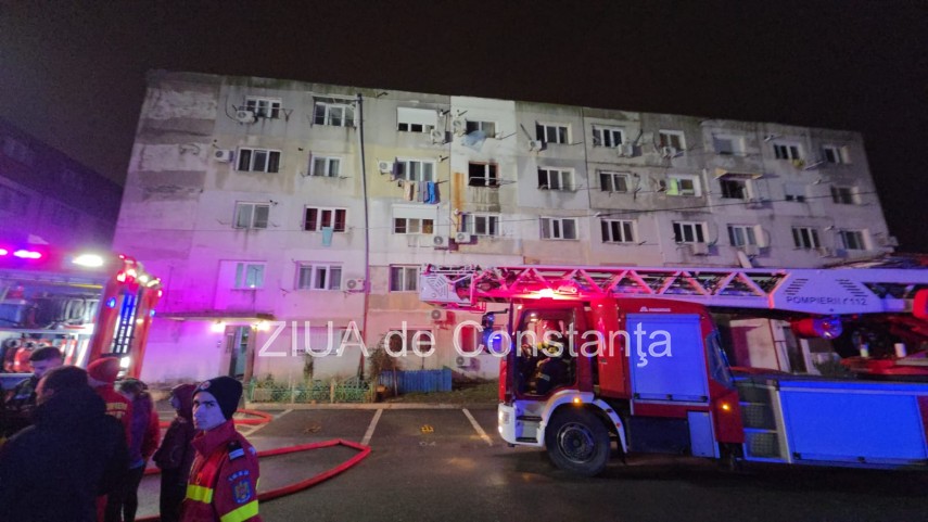 FOTO-VIDEO Incendiu violent într-un bloc din Năvodari! Locatarii sunt evacuați de urgență. Un bărbat a murit