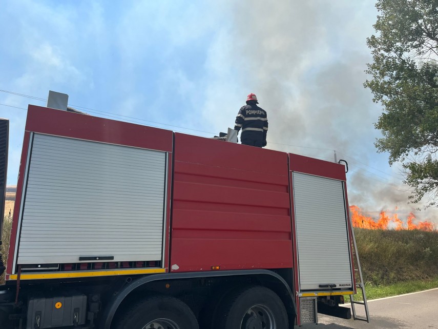 „La sosirea salvatorilor, incendiul se manifesta cu flacără deschisă atât la vegetația uscată, cât și la o cultură de grâu. Imediat colegii au chemat în sprijin încă un echipaj cu o autospecială de stingere de capacitate mare și au acționat coordonat pe mai multe flancuri pentru localizare și stingere.
