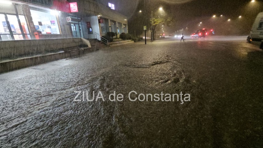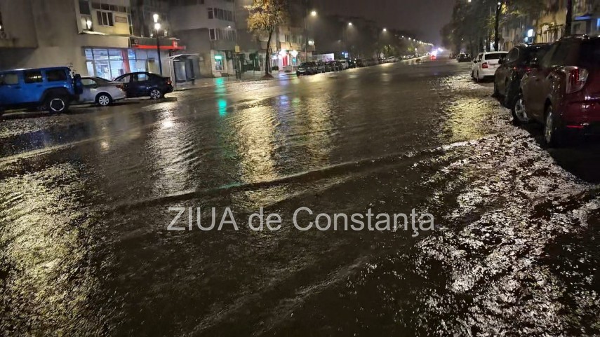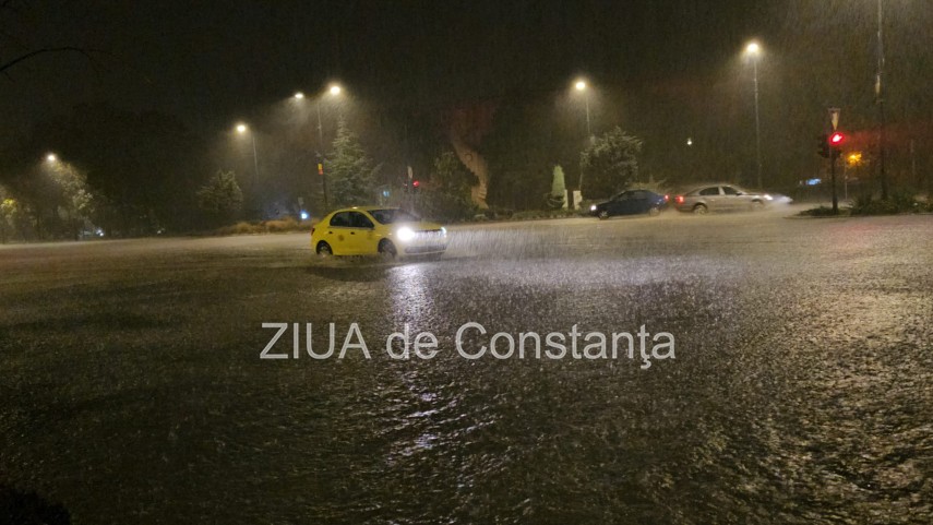 Intersecția Dacia din Constanța, inundată – traficul îngreunat pe bulevardele Tomis și Alexandru Lăpușneanu