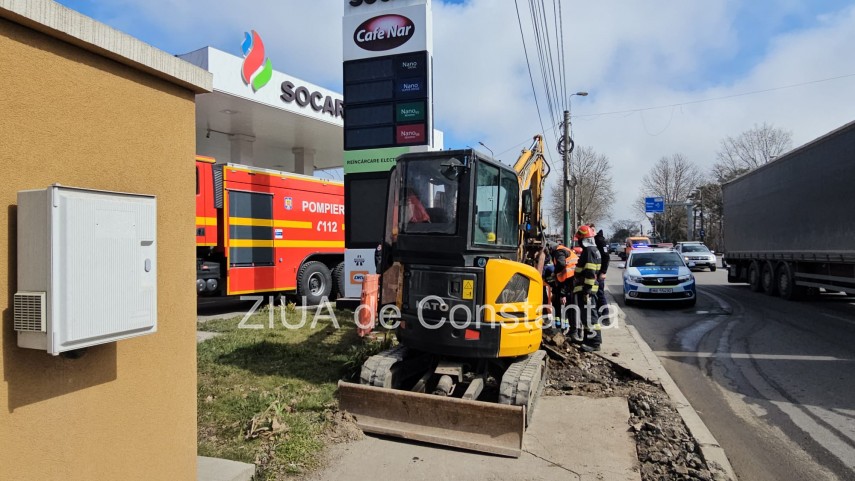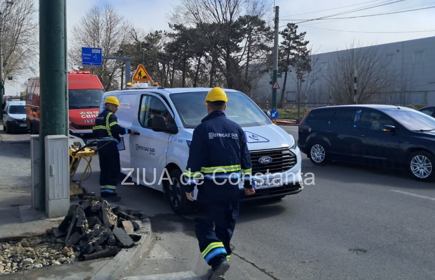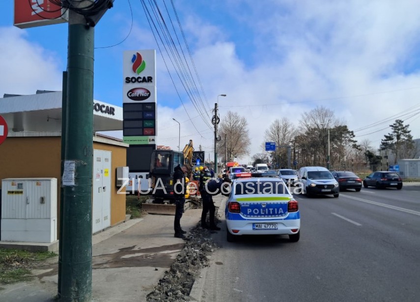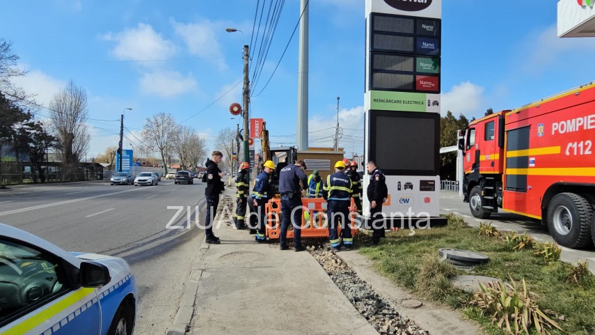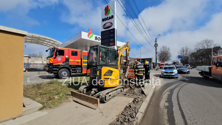 UPDATE. FOTO+VIDEO Intervenție de urgență în zona unei benzinării de pe bulevardul I.C. Brătianu din Constanța. Conductă de gaze ruptă
