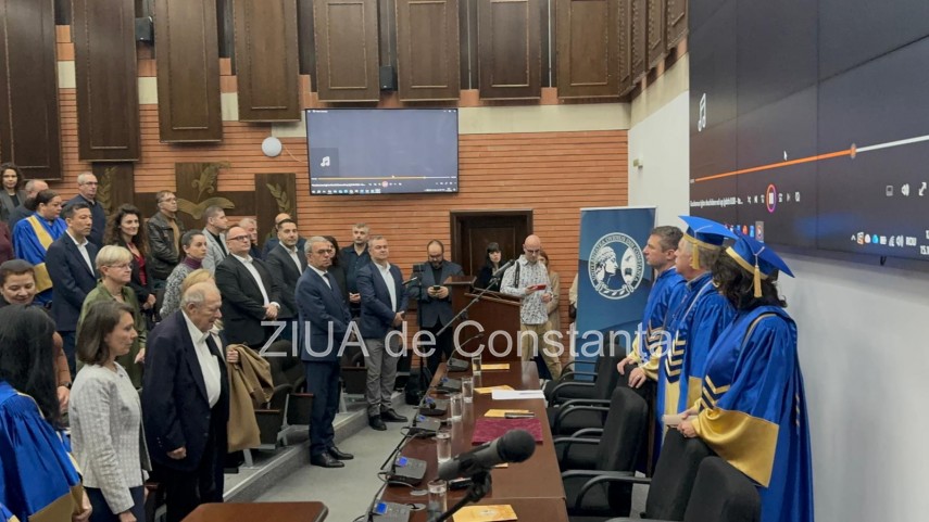 Îi mulțumesc laureatului de astăzi că ne-a făcut onoarea să accepte acest titlu- a precizat rectorul Dan-Marcel Iliescu.