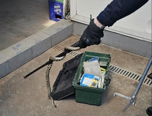 La fața locului s-a deplasat un echipaj de jandarmerie, care în scurt timp a reușit să identifice un șarpe ascuns în garajul casei respective. Cu ajutorul dispozitivului din dotare, șarpele în lungime de peste 150 cm a fost extras și eliberat în mediul natural.