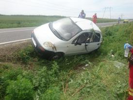 Un accident rutier a avut loc astăzi, în judeţul Constanţa, pe DN 22, la ieşire din Palazu Mic, spre Gura Dobrogei.O maşină a ajuns în afara şoselei, pe câmp. Sunt patru victime
